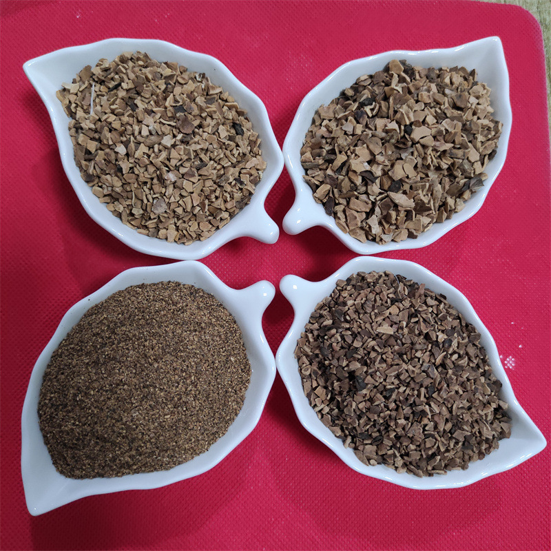 核桃殼是內(nèi)果皮,外果皮和中果皮在未成熟是為青色,成熟后脫落。核桃殼是一種經(jīng)脫脂、破碎、篩選等處理加工過(guò)的顆粒狀,表面多微孔、吸附效果較好的濾料,也是天然的滾光材料及拋光磨料,用它做磨料不會(huì)破壞工件表面、拋光效果好等優(yōu)點(diǎn):(一)抗壓能力強(qiáng) 粒徑為1.25-1.60mm的核桃殼粒,平均抗壓極限為0.2295KN(23.40kgf)。粒徑為0.80-1.00mm的核桃殼粒,平均抗壓極限為0.165KN(16.84kgf)。(二)化學(xué)性質(zhì)穩(wěn)定 不含有毒物質(zhì),在酸、堿、水中溶解量很小,核桃殼在鹽酸溶液中的損耗為4.99%,在氫氧化鈉溶液中的損耗率為3.8%,不會(huì)引起水質(zhì)惡化現(xiàn)象。工業(yè)應(yīng)用